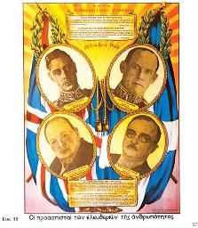 "ΖΗΤΩ Η ΕΛΛΗΝΟΑΓΓΛΙΚΗ ΣΥΜΜΑΧΙΑ 28 ΟΚΤΩΒΡΙΟΥ 1940. Οι προασπισταί των Ελευθεριών της Ανθρωπότητος."