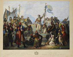 Ο λόρδος Βύρων ορκίζεται στον τάφο του Μάρκου Μπότσαρη στο Μεσολόγγι.