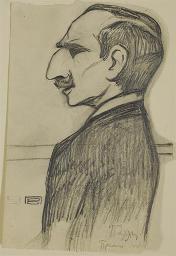 Σκίτσο από τη Δίκη των Έξι, Πάλλης, πρώην Επιτελάρχης