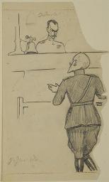 Σκίτσο από τη Δίκη των Έξι, κατάθεση του Χατζηανέστη