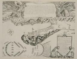 Plan des Villes, forteresses, passagesscits et terrain que le Turq a pris et occupe a present dans le Royaume de Candie auec la disposition que les deux armees nauales tenoient pour le Combat au mois
