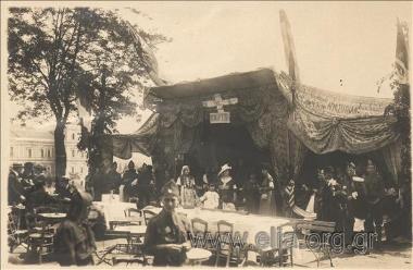 Canteen with Greek food in a international bazaar (?) probably in Smyrna.