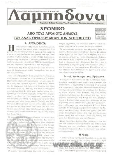Περιοδική έκδοση ποικίλης ύλης Πνευματικού Κέντρου Δήμου Ασπροπύργου