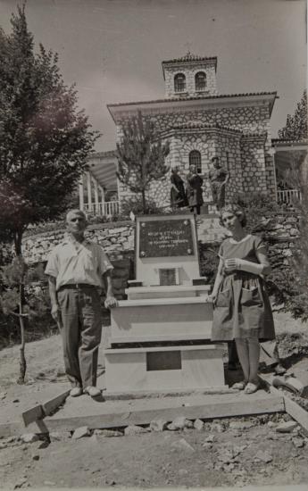 Ο Ηλίας και η Παρασκευή Αλβανίδη στον τάφο του Φίλωνα Κτενίδη