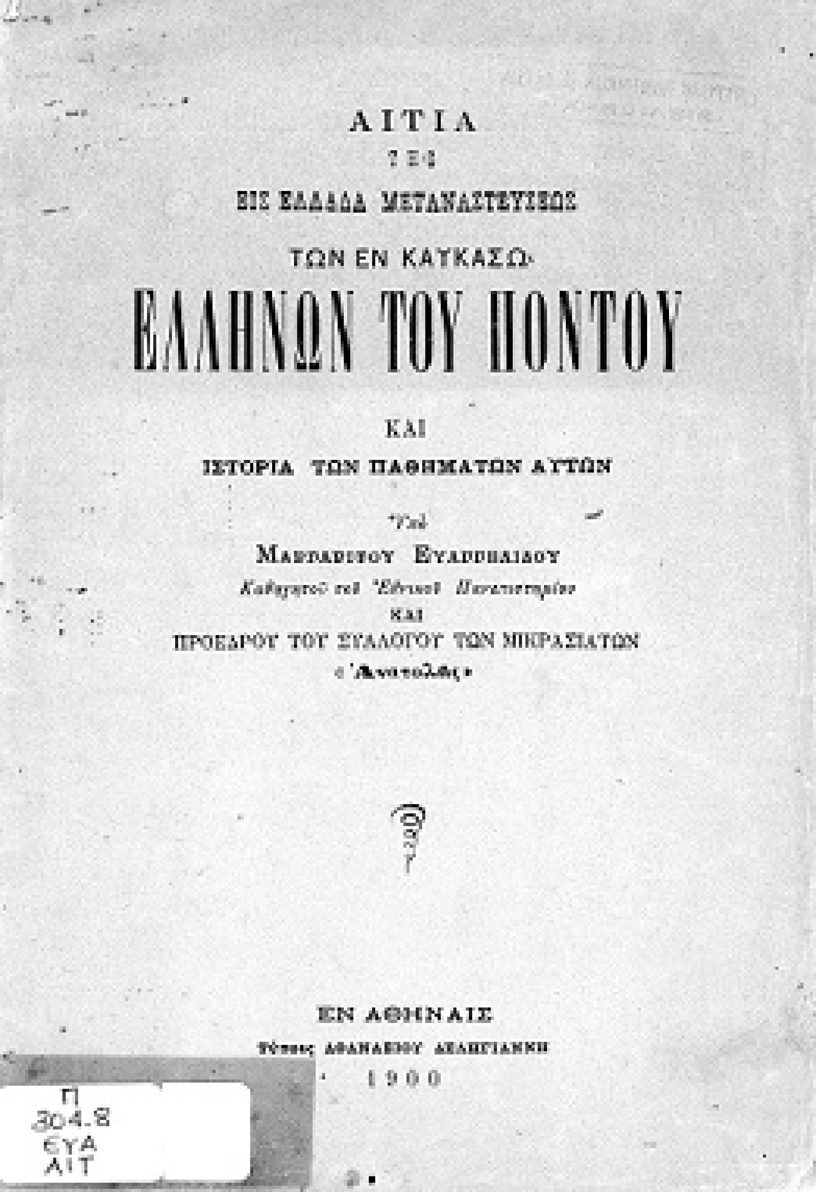 Αίτια της εις Ελλάδα μεταναστεύσεως των εν Καυκάσω Ελλήνων του Πόντου και ιστορία των παθημάτων αυτών