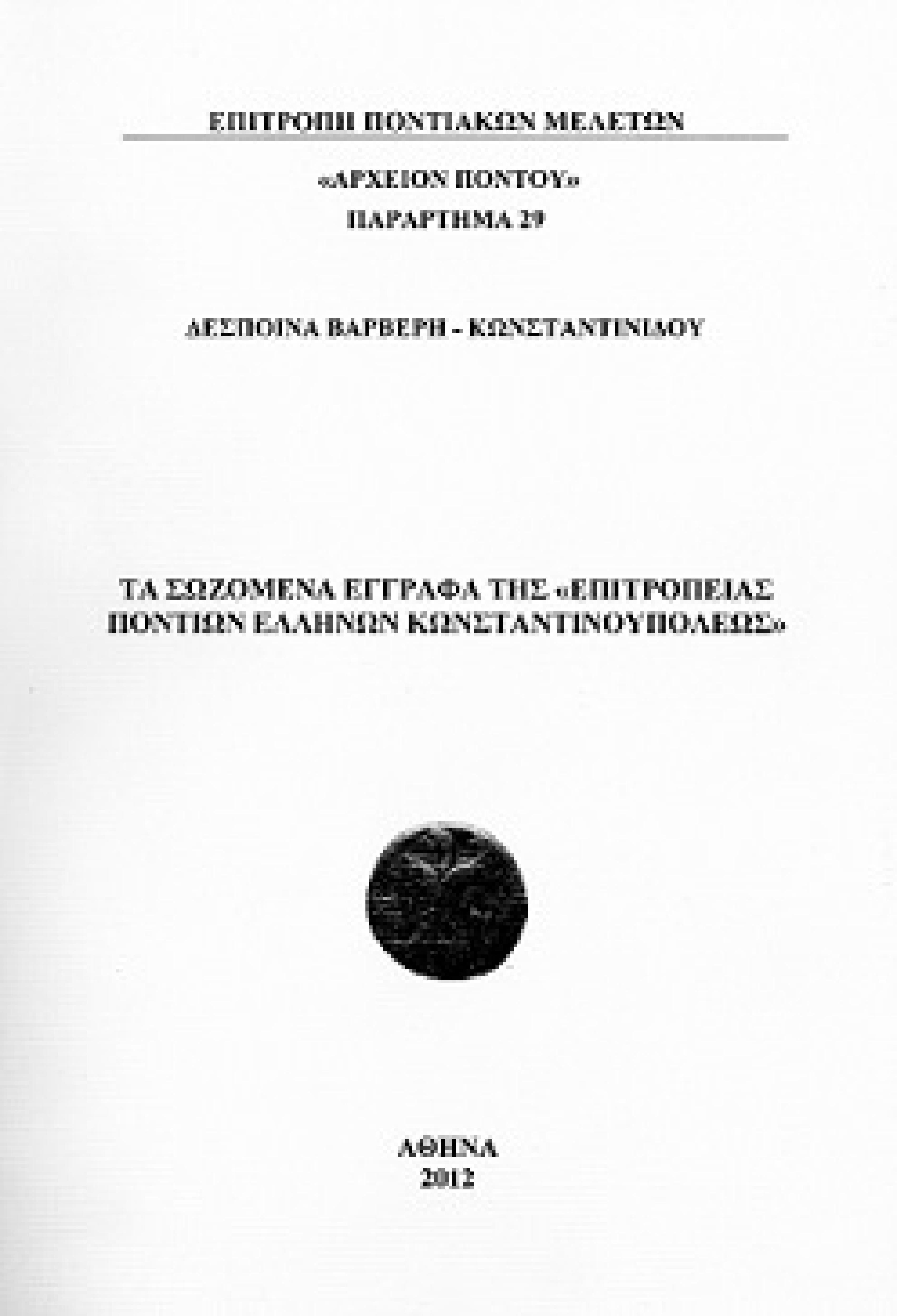 Τα σωζόμενα έγγραφα της «Επιτροπείας Ελλήνων Ποντίων Κωνσταντινουπόλεως»