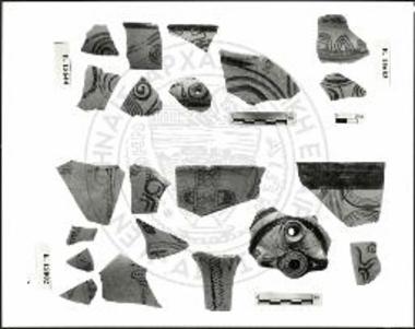 "Εργαστήριο", όστρακα από τους Χώρους Κ - Λ, πέριξ του τοίχου 10 (Ε15802) και γύρω από τον τοίχο 25 (Ε15644), όστρακα από τον Χώρο Ν, γύρω από τον πίθο (Ε15683).