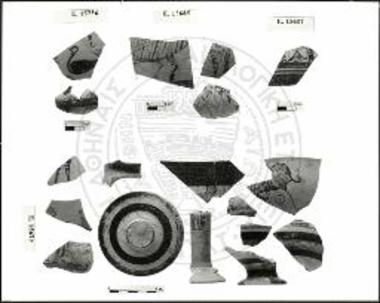 "Εργαστήριο", όστρακα από τον τοίχο 23 του Χώρου Ο (Ε15736, 15685), όστρακο από τους Χώρους Σ - Τ (Ε15617) και όστρακα όστρακα από τον τοίχο 20 του Χώρου Π (Ε15679).