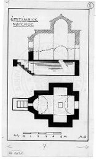 Κάτοψις και τομή του επιτυμβίου ναΐσκου της μονής