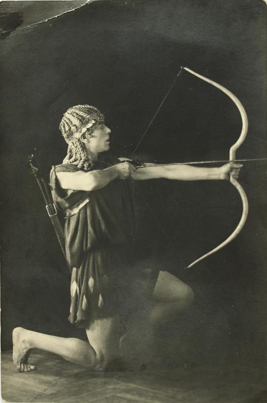 Αναπαράσταση μάχης Απόλλωνα με Πύθωνα. Ο Βάσος Κανέλλος ως Απόλλωνας. Α' Δελφικές Εορτές, 1927