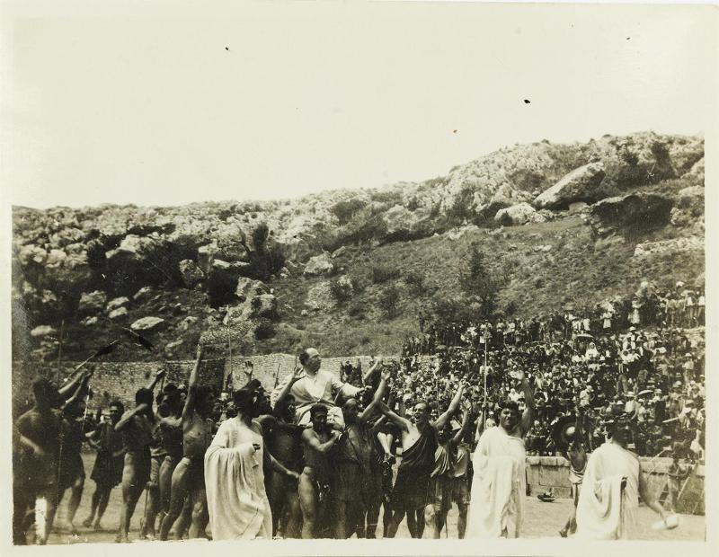 Περιφορά στο Αρχαίο Στάδιο του Σικελιανού πάνω σε ασπίδα, 1930