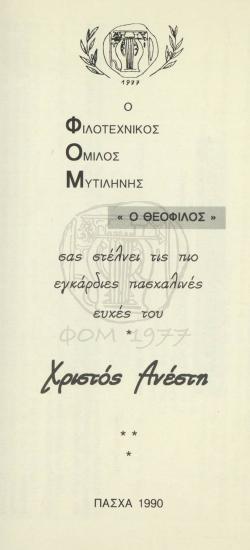 Ευχετήρια Πασχαλινή κάρτα-Η ίδρυση πολιτιστικού κέντρου ΦΟΜ