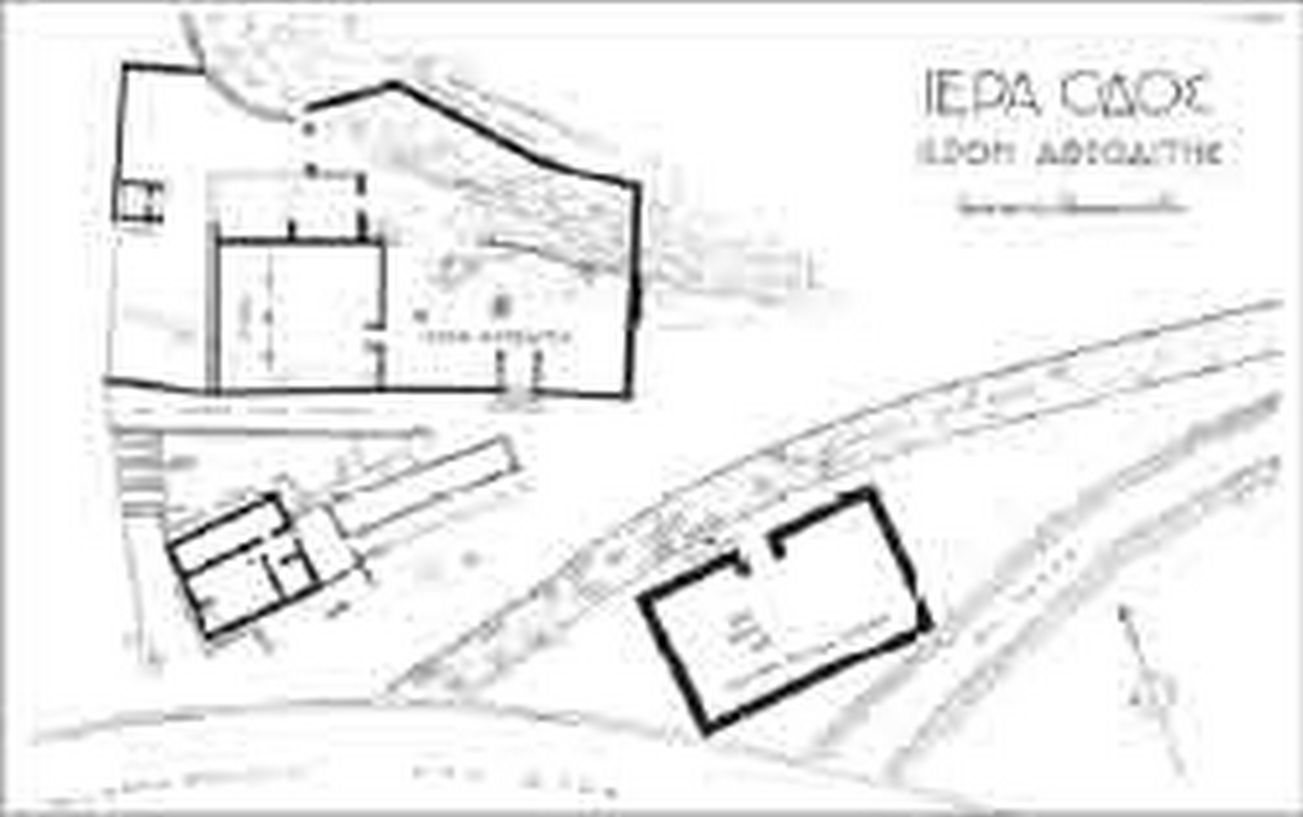 Εκτός του περιβόλου και σε ελαφρά παρεκκλίνοντα άξονα δομείται ένας οικίσκος με διάφορους χώρους, ο οποίος έχει υποτεθεί ότι χρησίμευε ως οικία ιερέων. Ο διαφορετικός προσανατολισμός του, σε σχέση με τα λοιπά οικοδομήματα εντός του ευρύτερου περιβόλου του ναού, κυρίως όμως η χρήση παλαιότερου υλικού, από το ιερό, στους τοίχους του, οδηγούν σε χρονολόγησή του σε λίγο μεταγενέστερα χρόνια, κατά την διάρκεια όμως της λειτουργίας του ιερού. Το οίκημα είναι φτιαγμένο από ακατέργαστους λίθους (αργολιθοδομή). Στο απέναντι τμήμα της Iεράς Oδού, σώζεται ένα ορθογώνιο κτίσμα (25 μ. X 15 μ.) με πολυγωνική τοιχοδομία. Πρόκειται προφανώς για το «τείχος αργών λίθων θέας άξιον», που παραδίδει ο Παυσανίας. Ήταν πύργος, σαν οχυρό, χωρίς να αποτελεί οργανικό τμήμα του τακτικού αμυντικού συστήματος της Αττικής. Αργότερα αχρηστεύθηκε και αποτέλεσε ταφικό μνημείο.