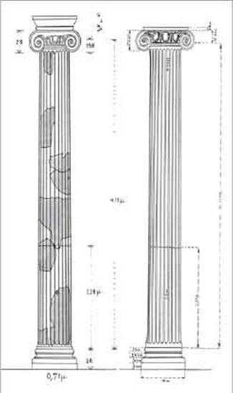 Σχεδιαστική απεικόνιση κιόνων ιωνικού ρυθμού από το Ιερό του Απόλλωνα στο Δαφνί