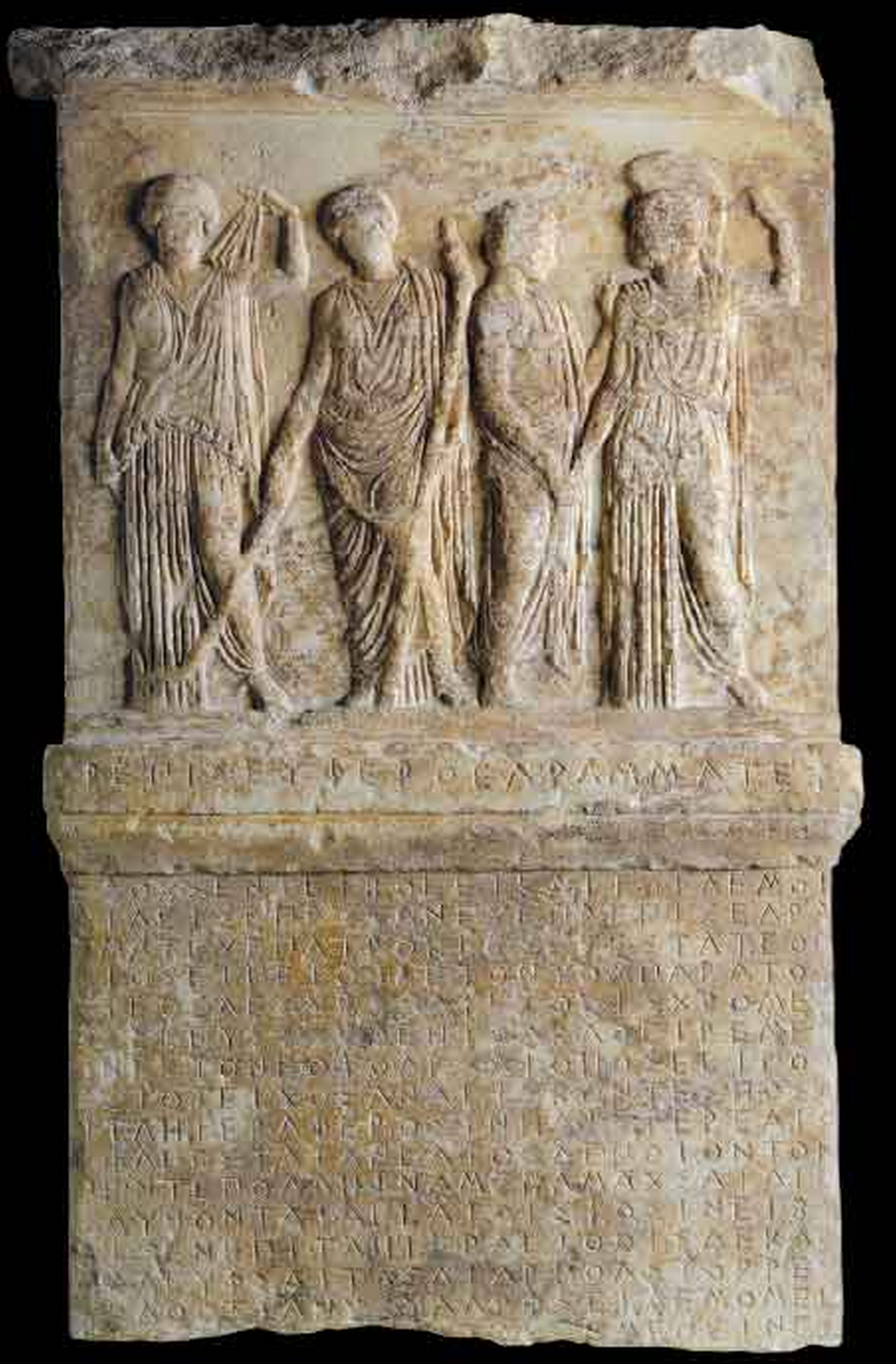 To ψηφισματικό ανάγλυφο για τη γεφύρωση των Ρειτών (ύψος 0,9 μ. και πλάτος 0,57 μ.), 422/421 π.Χ. (Αρχαιολογικό Μουσείο Ελευσίνας)