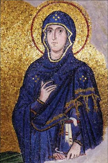 Η μορφή της Παναγίας από την παράσταση του Ευαγγελισμού στο βορειοανατολικό ημιχώνιο του καθολικού της μονής Δαφνίου.