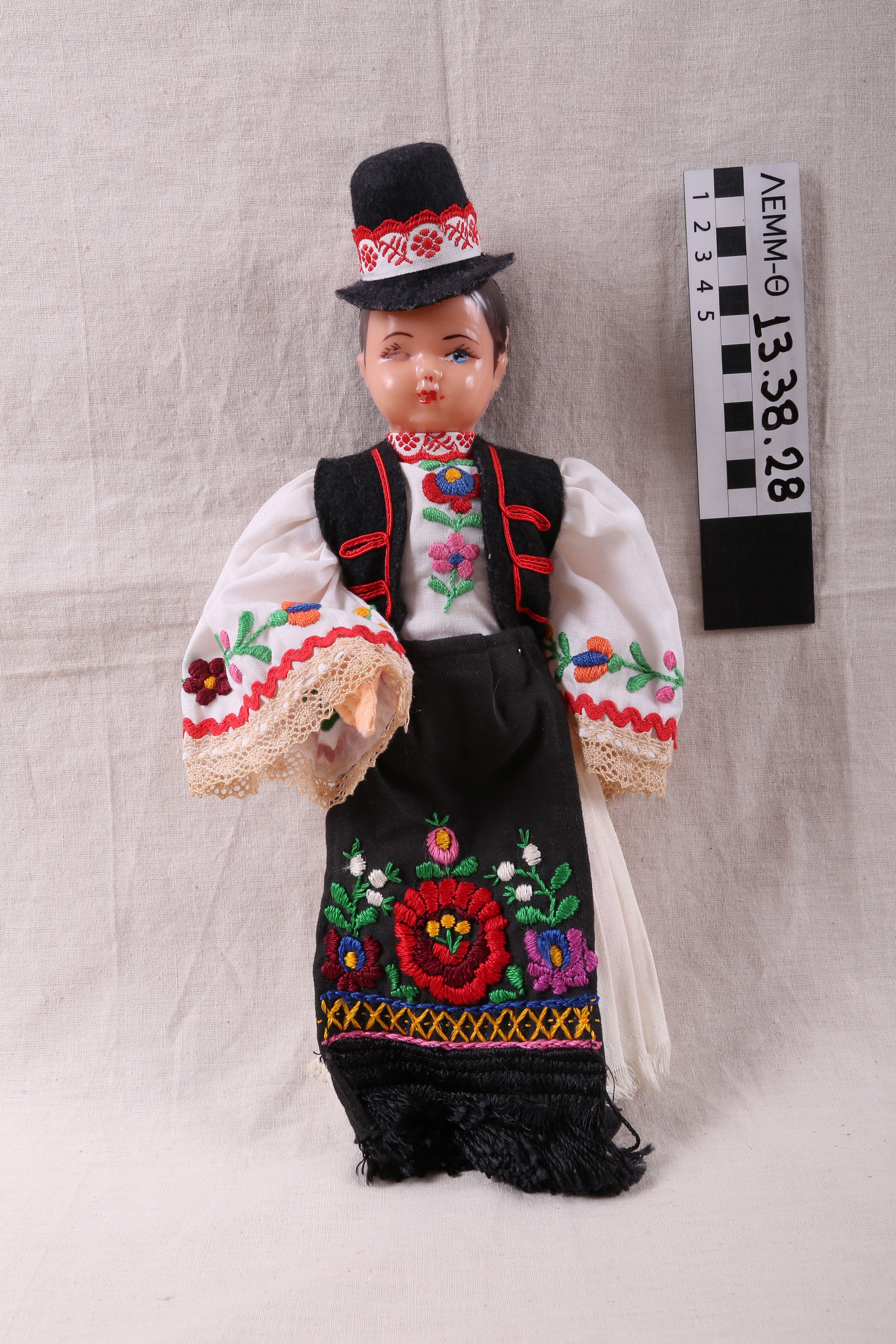 Κούκλα - κούκλα υφασμάτινη με κεφάλι πλαστικό με παραδοσιακή φορεσιά. Από την περιοχή της Ανατολικής Ρωμυλίας. Δεκαετία του 1980