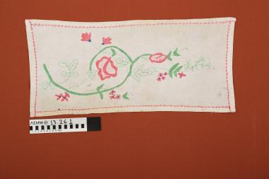 Στρωσίδι - μπάντα τοίχου βαμβακερή λευκή με χειροποίητη κέντημα με ανθικά μοτίβα σε πράσινο, ρόζ και μπλε χρώμα
