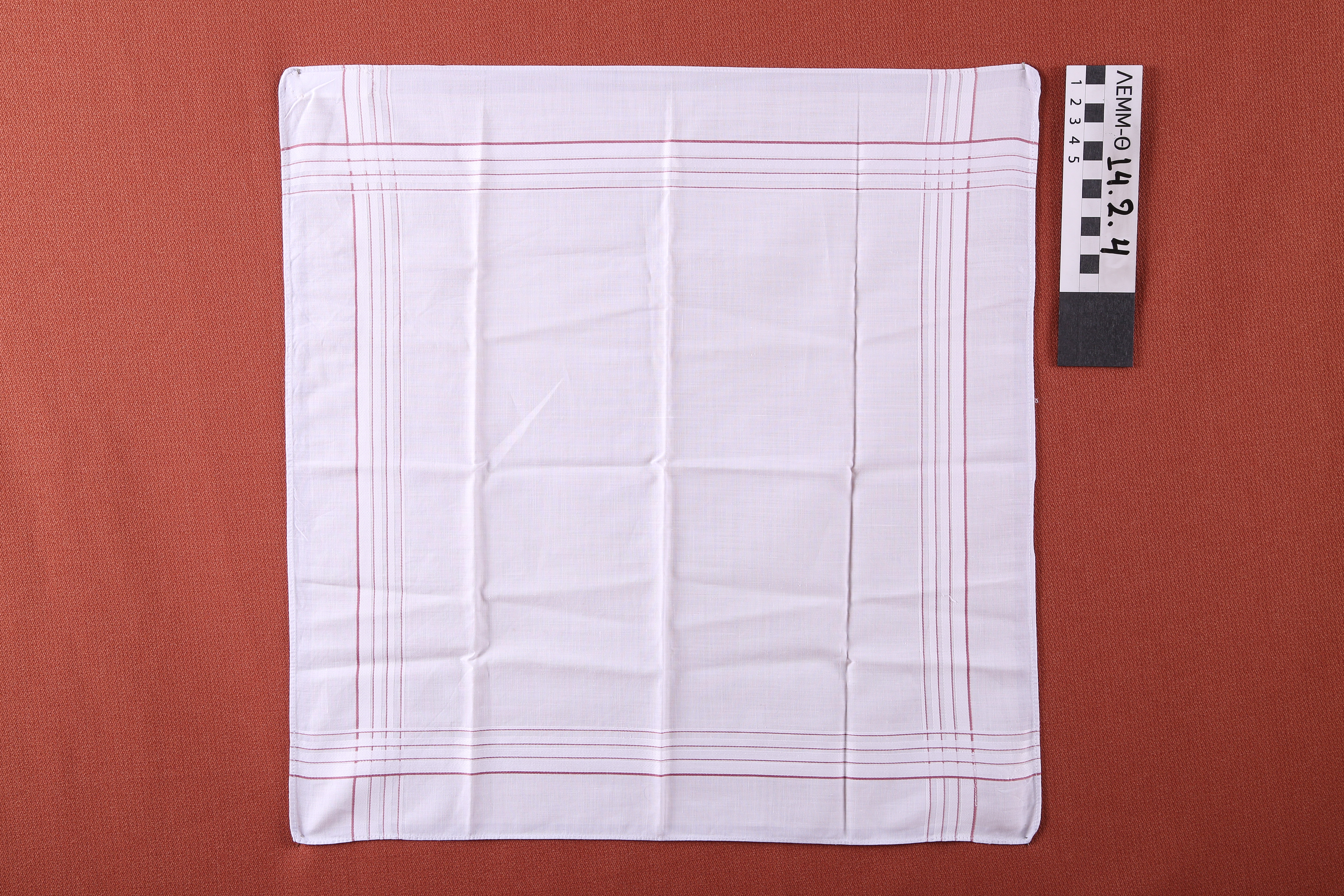 Μαντήλι - μαντήλι ανδρικό χειρός βαμβακερό λευκό με βυσσινί ενυφασμένες ταινίες που τέμνονται