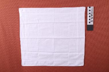 μαντήλι ανδρικό χειρός βαμβακερό, λευκό με ταινίες λευκές πυκνότερης ύφανσης που τέμνονται σχηματίζοντας πλαίσιο κοντά στην περίμετρο του υφάσματος