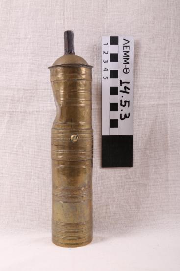 Μύλος του καφέ - μύλος του καφέ χάλκινος, κυλινδρικός, με εγχάρακτη γεωμετρική διακόσμηση (EL)