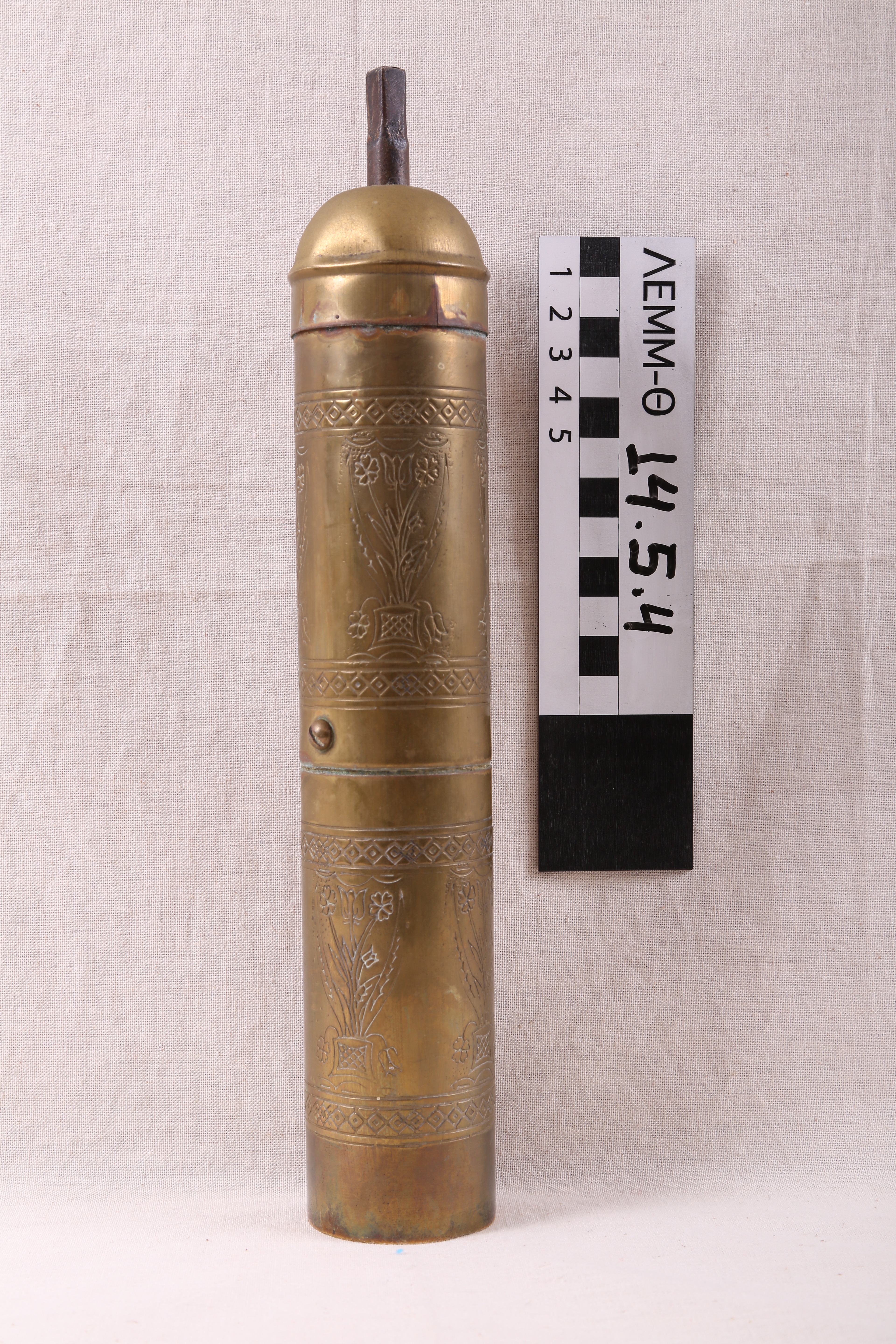 Μύλος του καφέ - μύλος του καφέ χάλκινος, κυλινδρικός, με εγχάρακτη ανθική και γεωμετρική διακόσμηση
