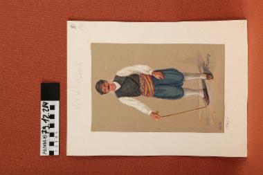 Σχέδιο - σχέδιο χειροποίητο με υδροχρώματα σε χαρτόνι. Απεικονίζει άνδρα με παραδοσιακή φορεσιά της Νάξου