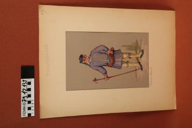 Σχέδιο - σχέδιο χειροποίητο με υδροχρώματα σε χαρτόνι. Απεικονίζει άνδρα με παραδοσιακή φορεσιά Αργολίδας Πελοποννήσου