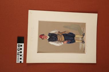 Σχέδιο - σχέδιο χειροποίητο με υδροχρώματα σε χαρτόνι. Απεικονίζει άνδρα με παραδοσιακή φορεσιά Κύπρου