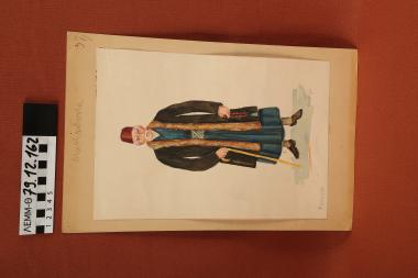 Σχέδιο - σχέδιο χειροποίητο με υδροχρώματα σε χαρτόνι. Απεικονίζει άνδρα με παραδοσιακή φορεσιά Καστοριάς Μακεδονίας
