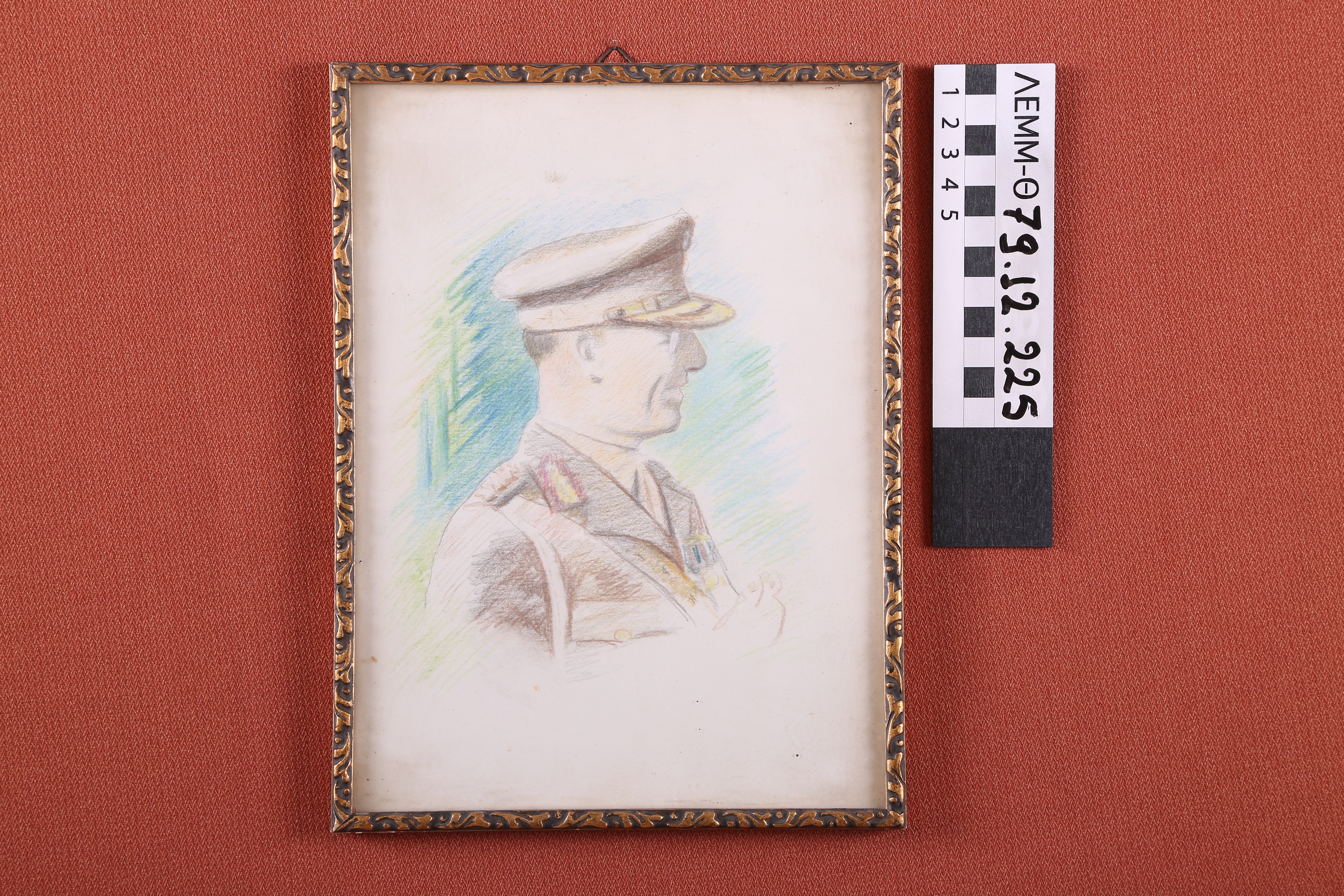 Σκίτσο σε κορνίζα - σκίτσο που απεικονίζει αξιωματικό του στρατού, σε κορνίζα