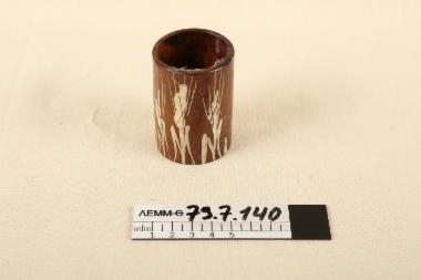 Μελανοδοχείο - μελανοδοχείο πήλινο κυλινδρικό, βαμμένο καφέ, με ανθικό μοτίβο εξωτερικά