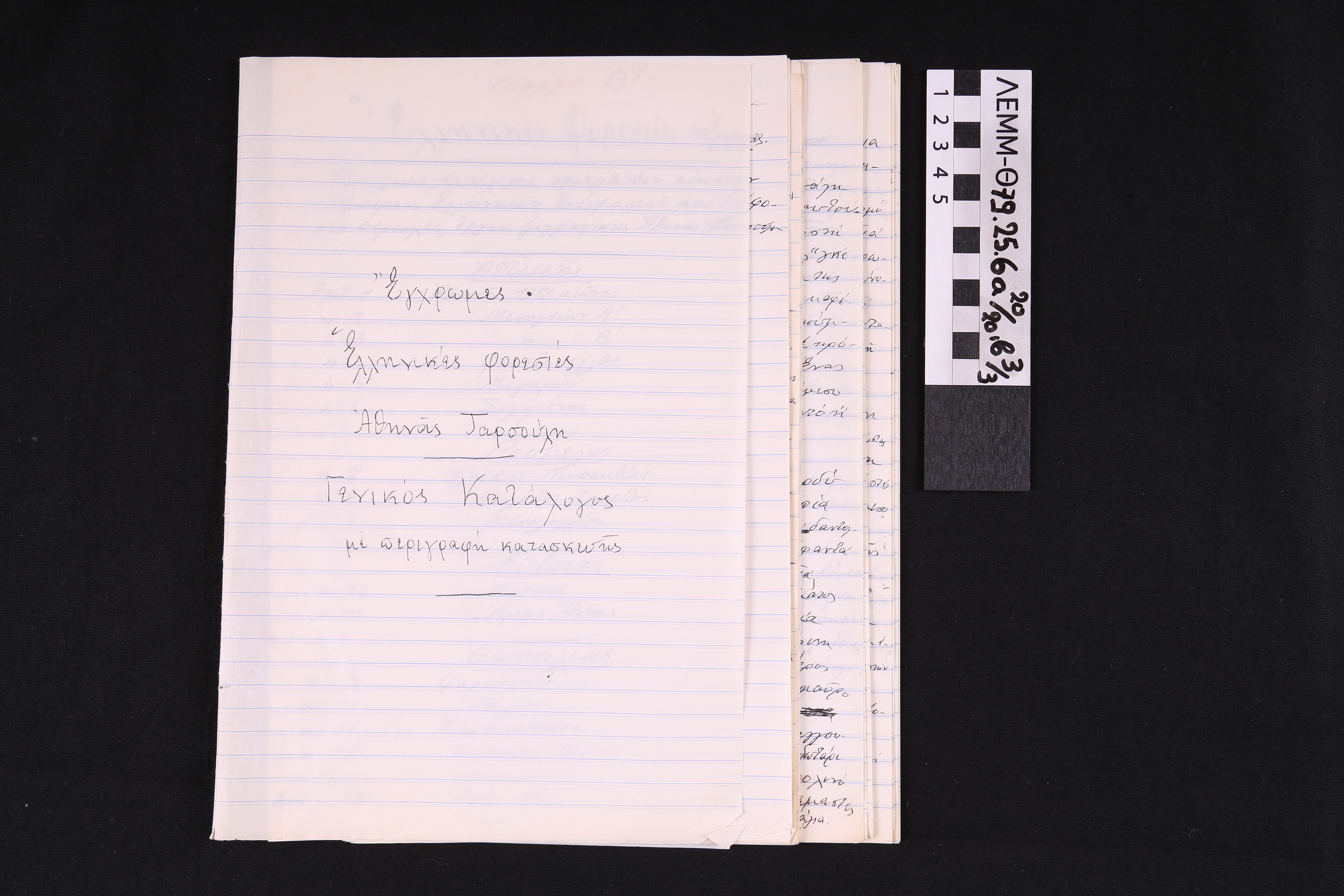 Κατάλογος σχεδίων Ταρσούλη - κατάλογος χειρόγραφος σχεδίων ελληνικών παραδοσιακών ενδυμασιών της Αθηνάς Ταρσούλη, υπογεγραμμένος από την ίδια