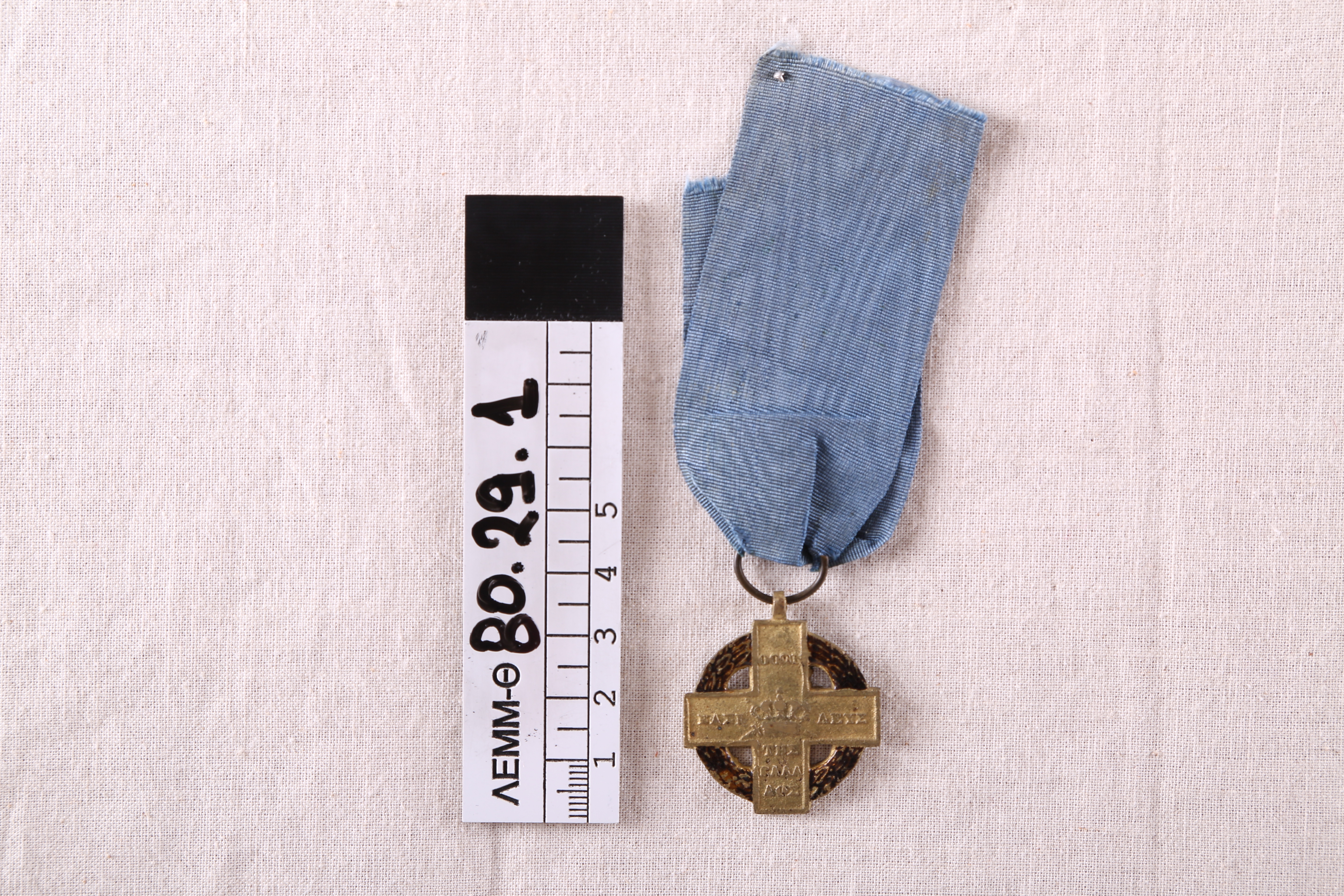 Παράσημο - παράσημο μεταλλικό, σε σχήμα σταυρού πλαισιωμένου από στεφάνι, με ανάγλυφη κορώνα και επιγραφή