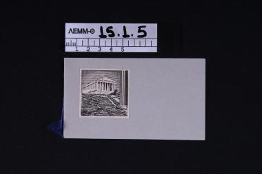 Κάρτα - κάρτα δίφυλλη αλληλογραφίας με επικολλημένο σκίτσο του Παρθενώνα στην πρόσθια όψη