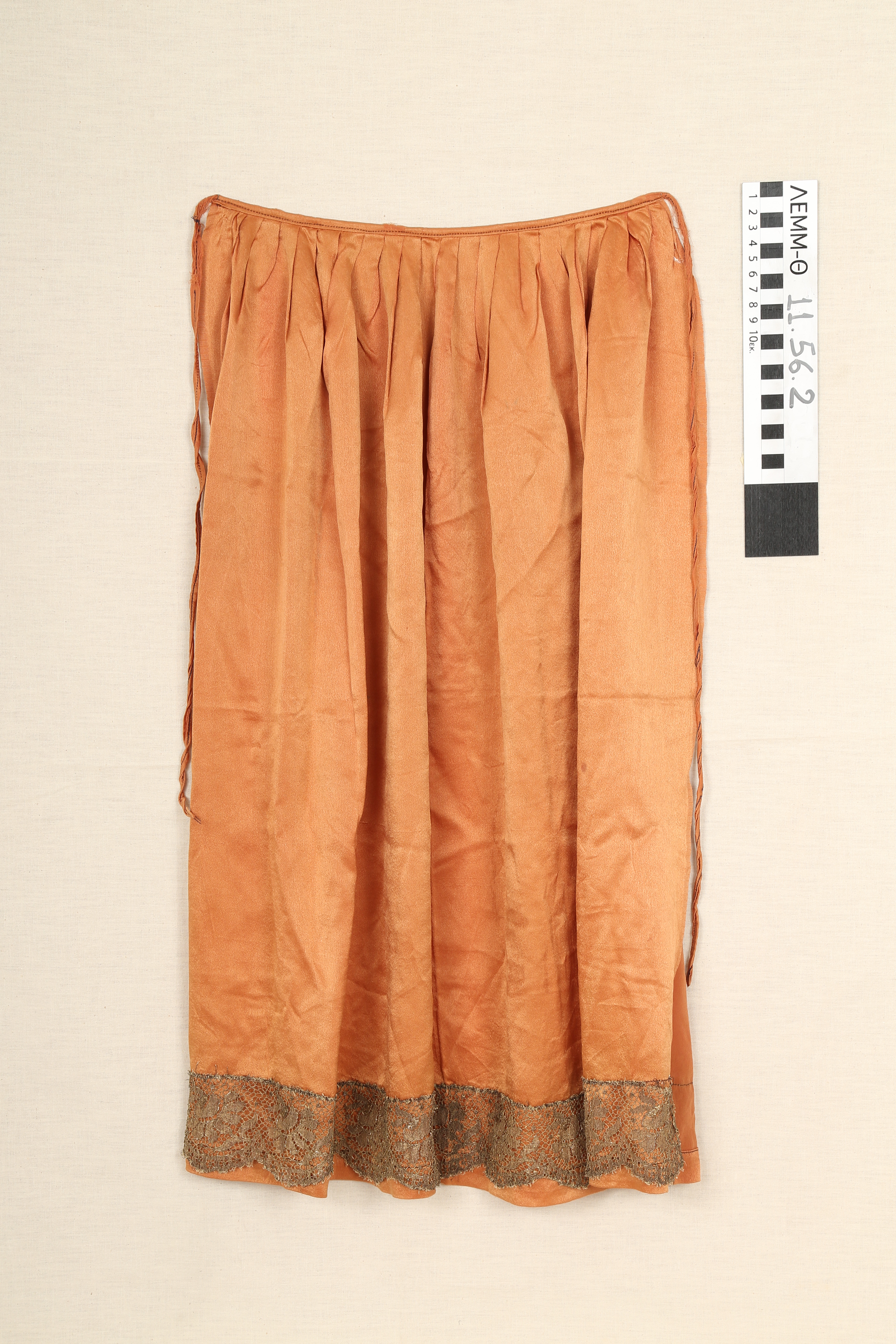Ποδιά - ποδιά μεταξωτή κεραμιδί με δαντέλα με μεταλλοκλωστή στο κάτω άκρο