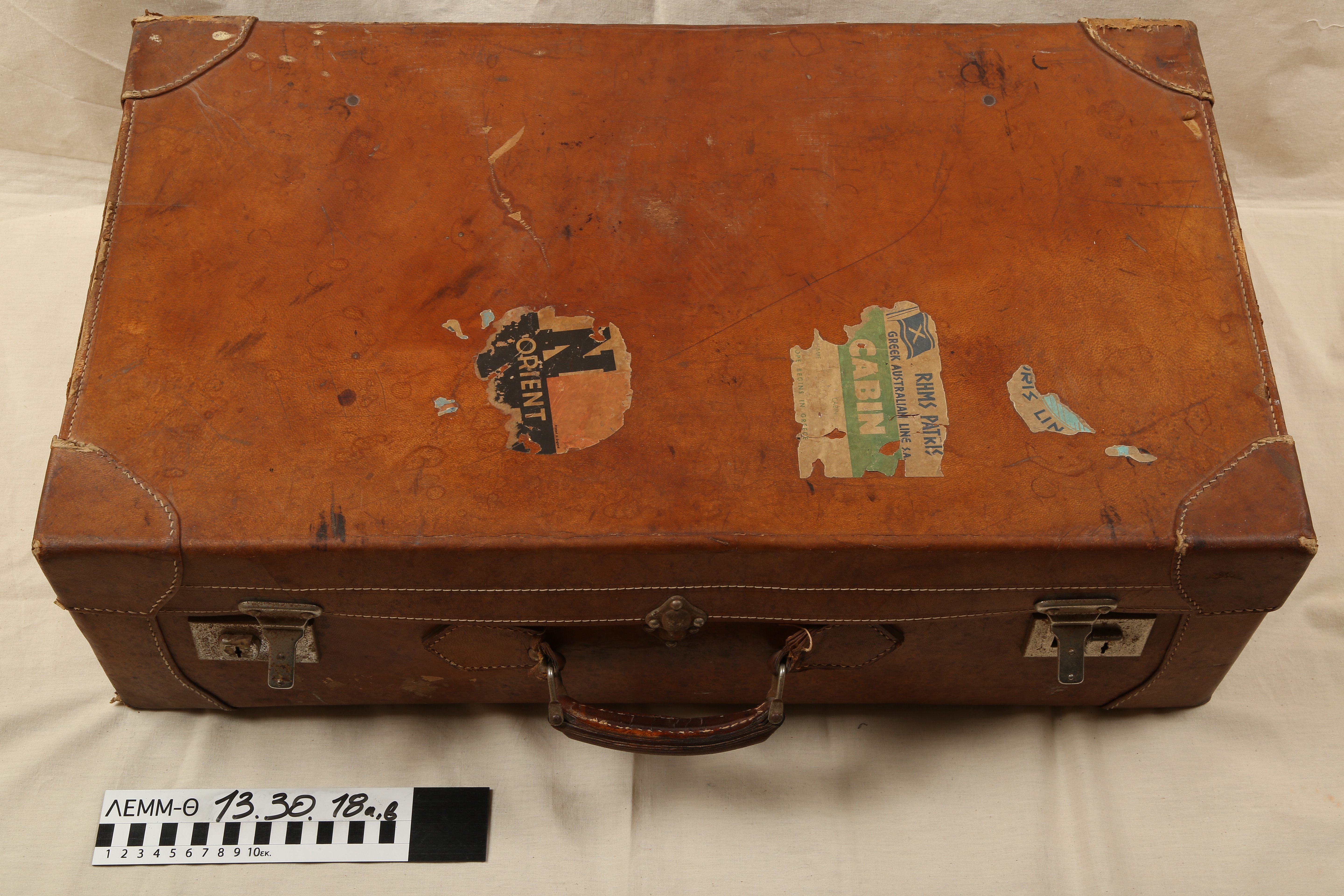 Βαλίτσα - βαλίτσα ταξιδιωτική δερμάτινη χρώματος καφέ με εσωτερικό οριζόντιο διαχωριστικό και μικρό μεταλλικό κλειδί