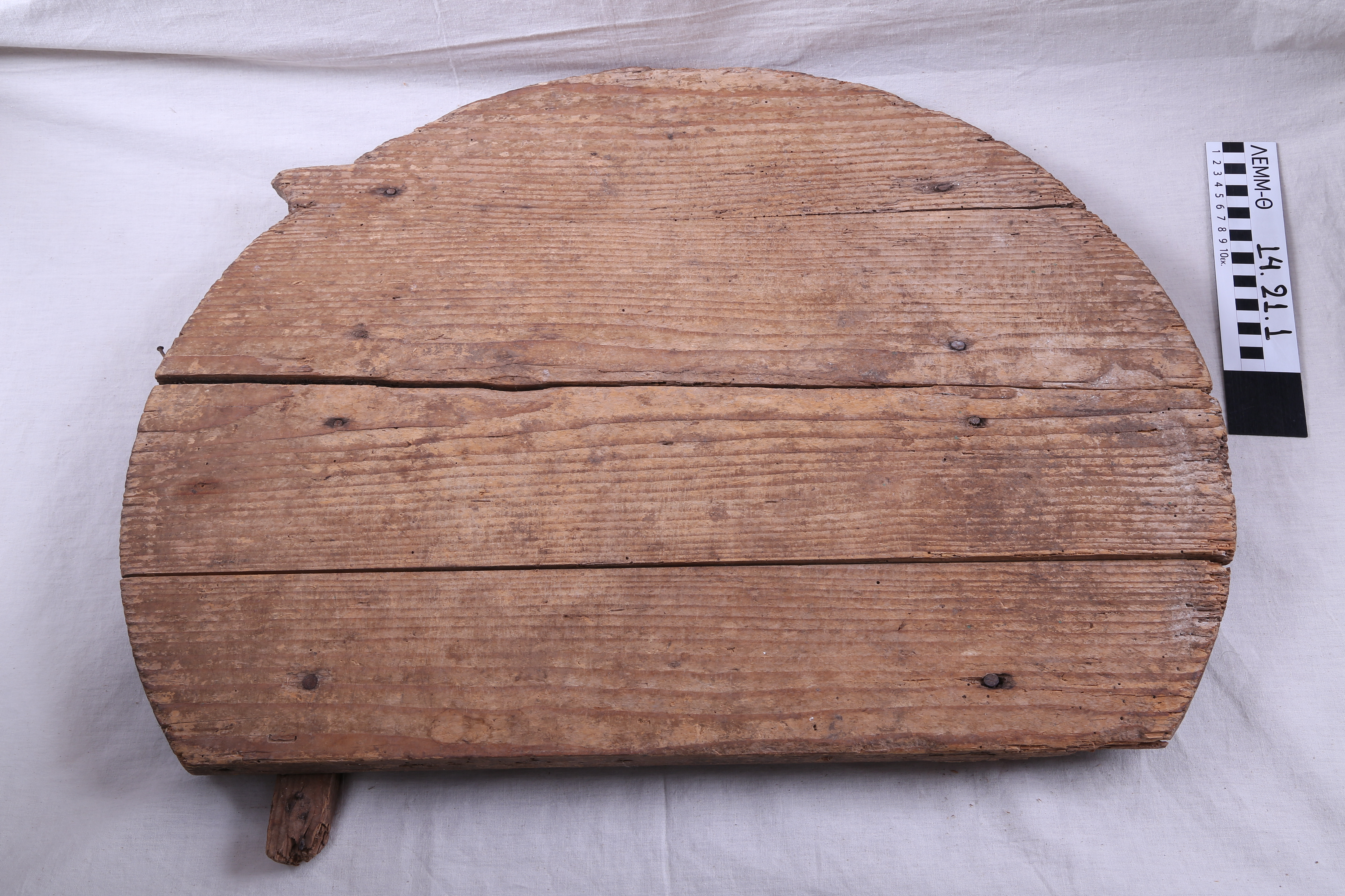 Πλασταριά - πλασταριά ξύλινη στρογγυλή επίπεδη, από την οποία σώζονται τέσσερα σανίδια ενωνένα με ένα δοκάρι κάθετα καρφωμένο με πρόκες