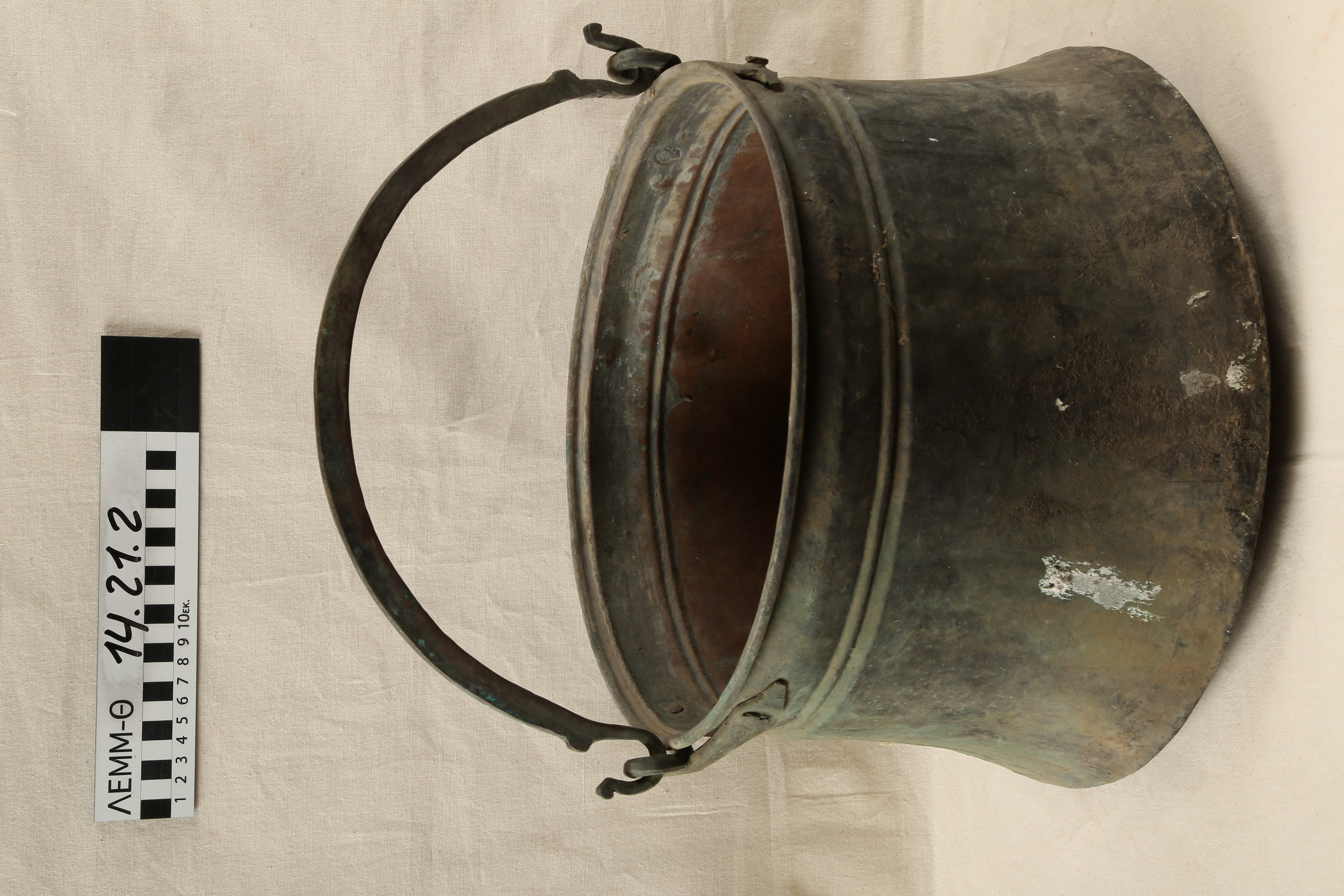 Καζάνι - σκεύος χάλκινο, βαθύ, με καμπυλωμένα τοιχώματα και ημικυκλικό κινητό χερούλι συνδεδεμένο στα πλαϊνά του στομίου