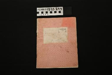 Τετράδιο - τετράδιο με εξώφυλλο ροζ και ετικέτα με υπόλειμμα εκτυπωμένης επιγραφής "…..LONIQUE" και χειρόγραφο τίτλο "Βιβλίον παραδιδομένων προς μελ. εκ της βιβλιοθήκης βιβλίων 1914". Περιέχει λίστες με ονόματα, χαρακτηρισμούς βιβλίων και στοιχεία δανεισμ