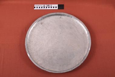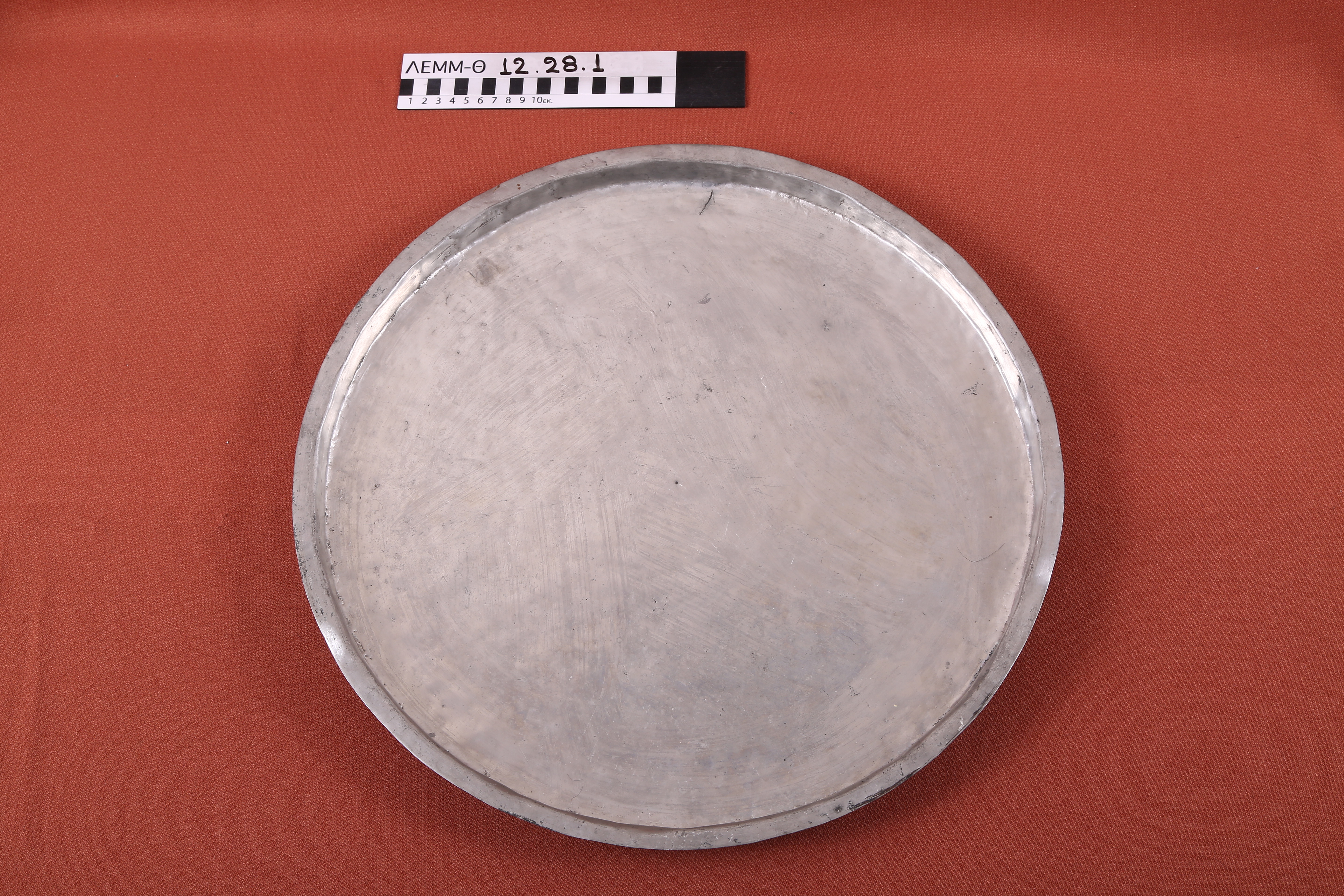 Σινί - σκεύος χάλκινο σφυρήλατο, κυκλικό επίπεδο, με χαμηλό χείλος. Χωρίς διακόσμηση. Με επικασσιτέρωση (γάνωμα)