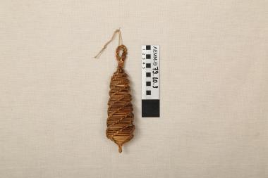 Στολίδι ψάθινο - διακοσμητικό αντικείμενο από πλεγμένη ψάθα σε ατρακτοειδές σχήμα, με θηλιά ανάρτησης στο άνω άκρο