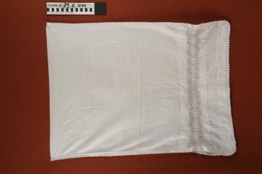 Πετσέτα - πετσέτα βαμβακερή από χασέ λευκό, με δαντέλα μηχανής λευκή περιμετρικά και δύο ζώνες πλεκτές λευκές στα άκρα