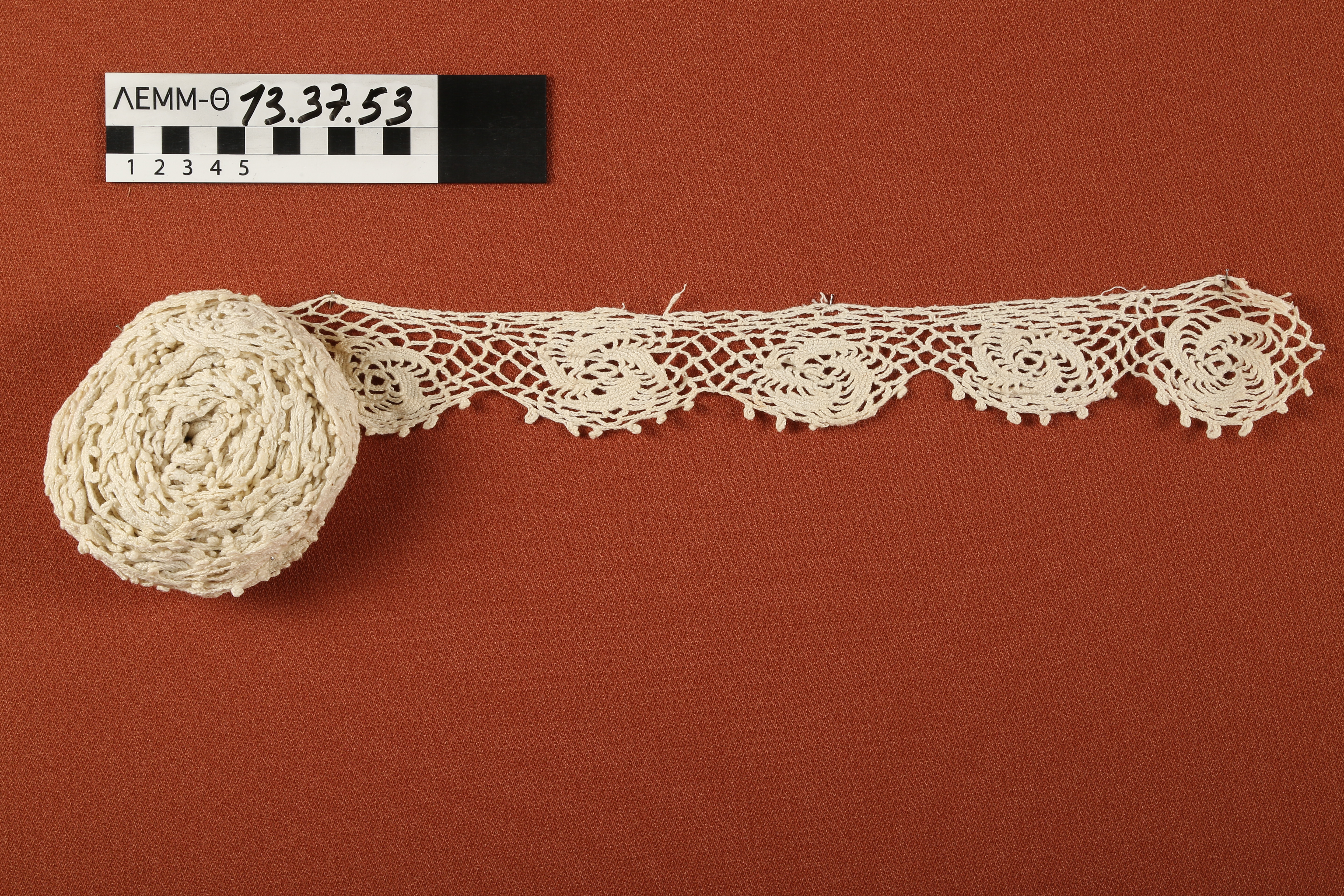 Δαντέλα - δαντέλα σε ανοιχτό μπεζ χρώμα, με σειρά από κυκλους σε ελικοειδές σχέδιο