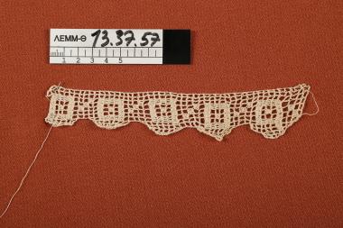 Δαντέλα - τμήμα δαντέλας, σε σκούρο μπεζ χρώμα, φιλτιρέ με μικρά τετράγωνα