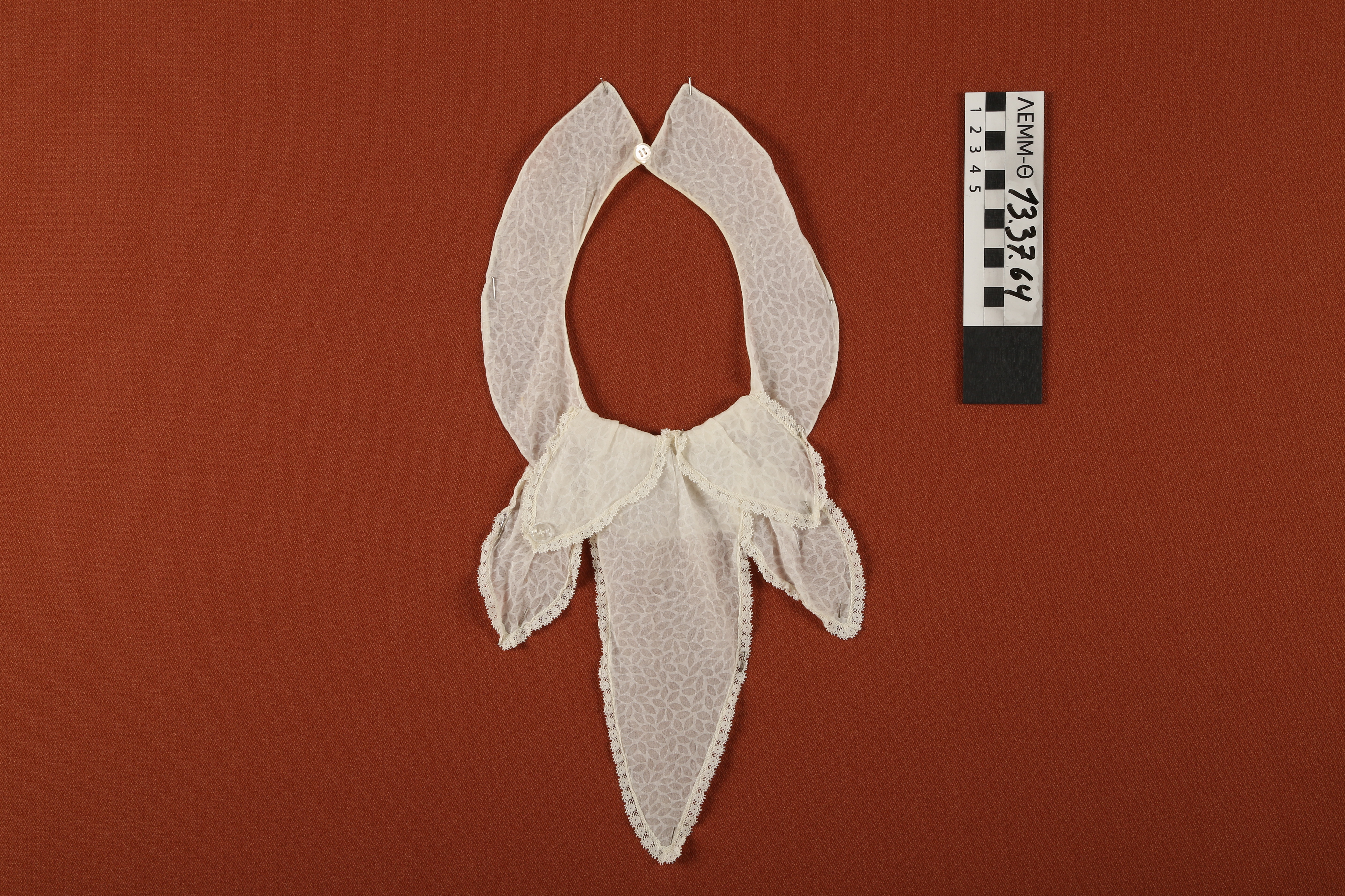 Γιακάς - υπόλευκος παιδικός γιακάς από αραχνοΰφαντο ύφασμα με δέσιμο φιόγκου στο πρόσθιο τμήμα και διαφανές κουμπί στο ένα στέλεχος του