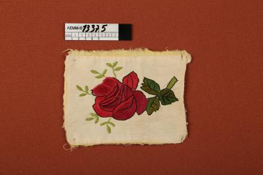 Κέντημα - φουξ τριαντάφυλλο, σε βαμβακερό, κίτρινο κάμπο ( από τσαντάκι)
