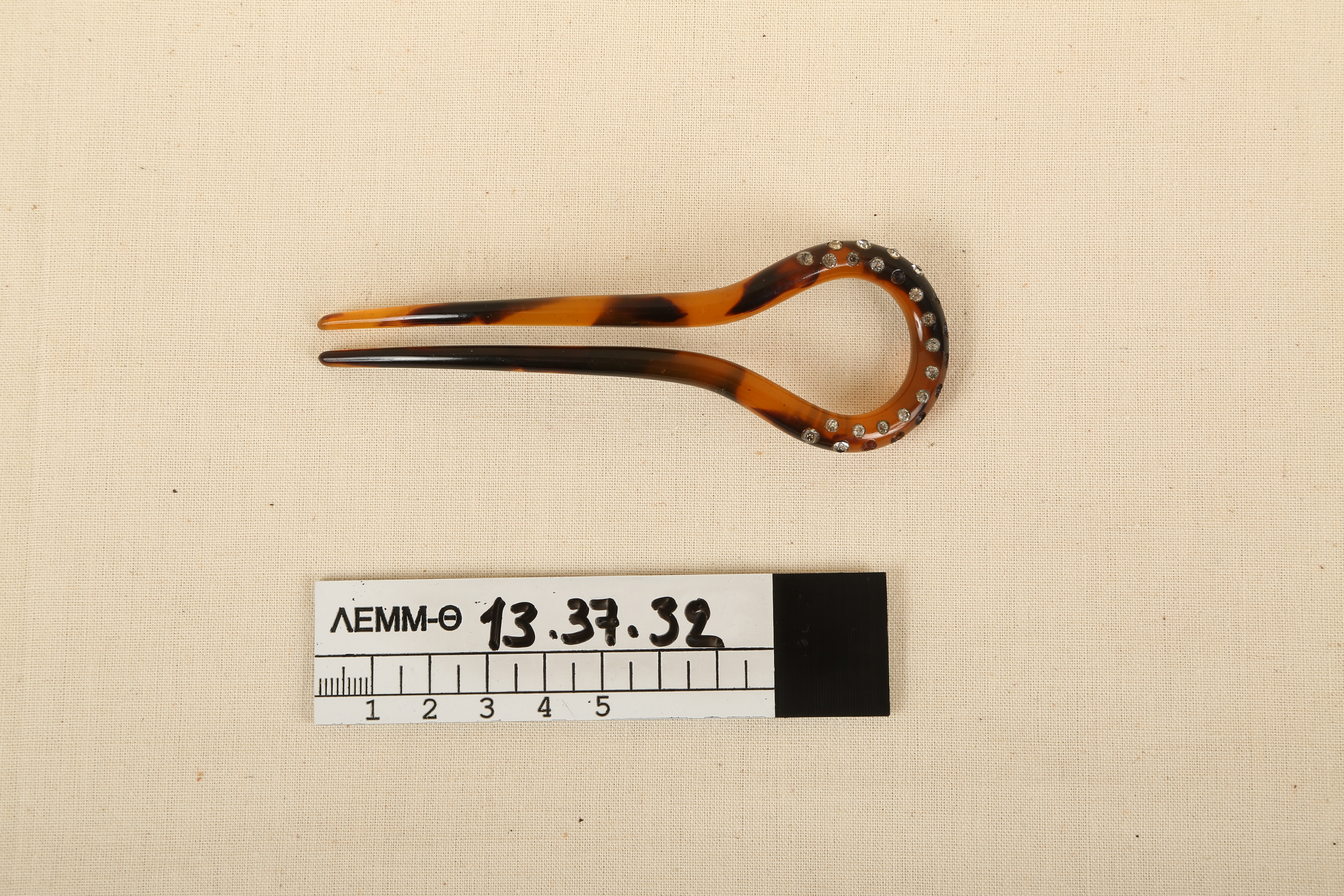 Φουρκέτα - πλαστική φουρκέτα σε καφέ χρώμα με λευκά στρασάκια