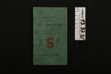 σε σκούρο πράσινο χρώμα με εκτυπωμένα μαύρα γράμματα στην αγγλική γλώσσα και με κόκκινη στάμπα μπρος-πίσω το σήμα της εταιρείας. Στην μπροστινή όψη φέρει την επιγραφή "Instructions for using Singer Sewing Machine No. 15".