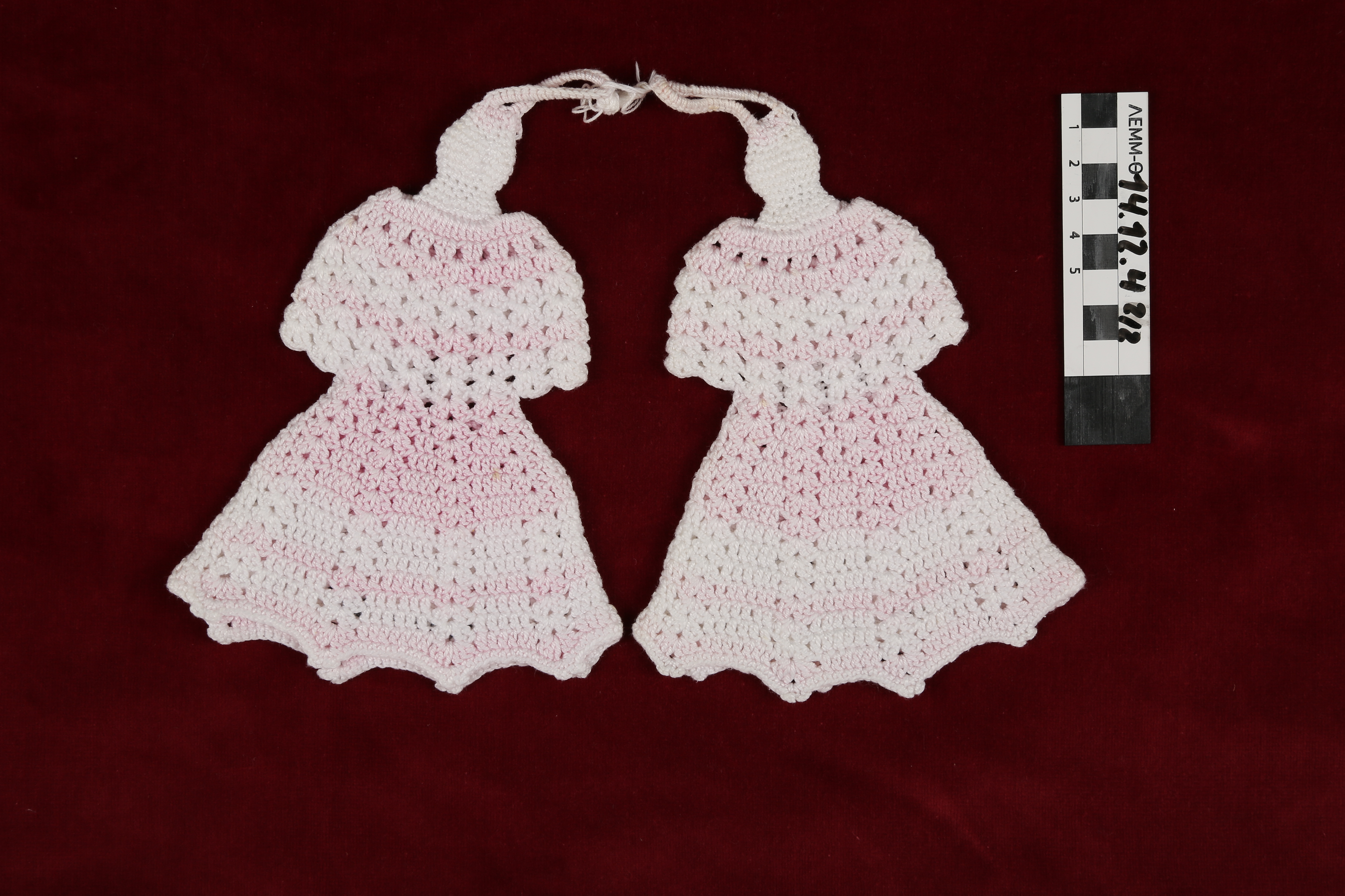 Πιάστρες - πλεκτές πιάστρες σε λευκό και ροζ χρώμα σε σχέδιο γυναικείου φορέματος